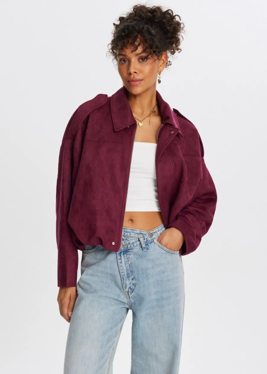 The Sting Cropped suedine bomberjack<DAMES Jassen