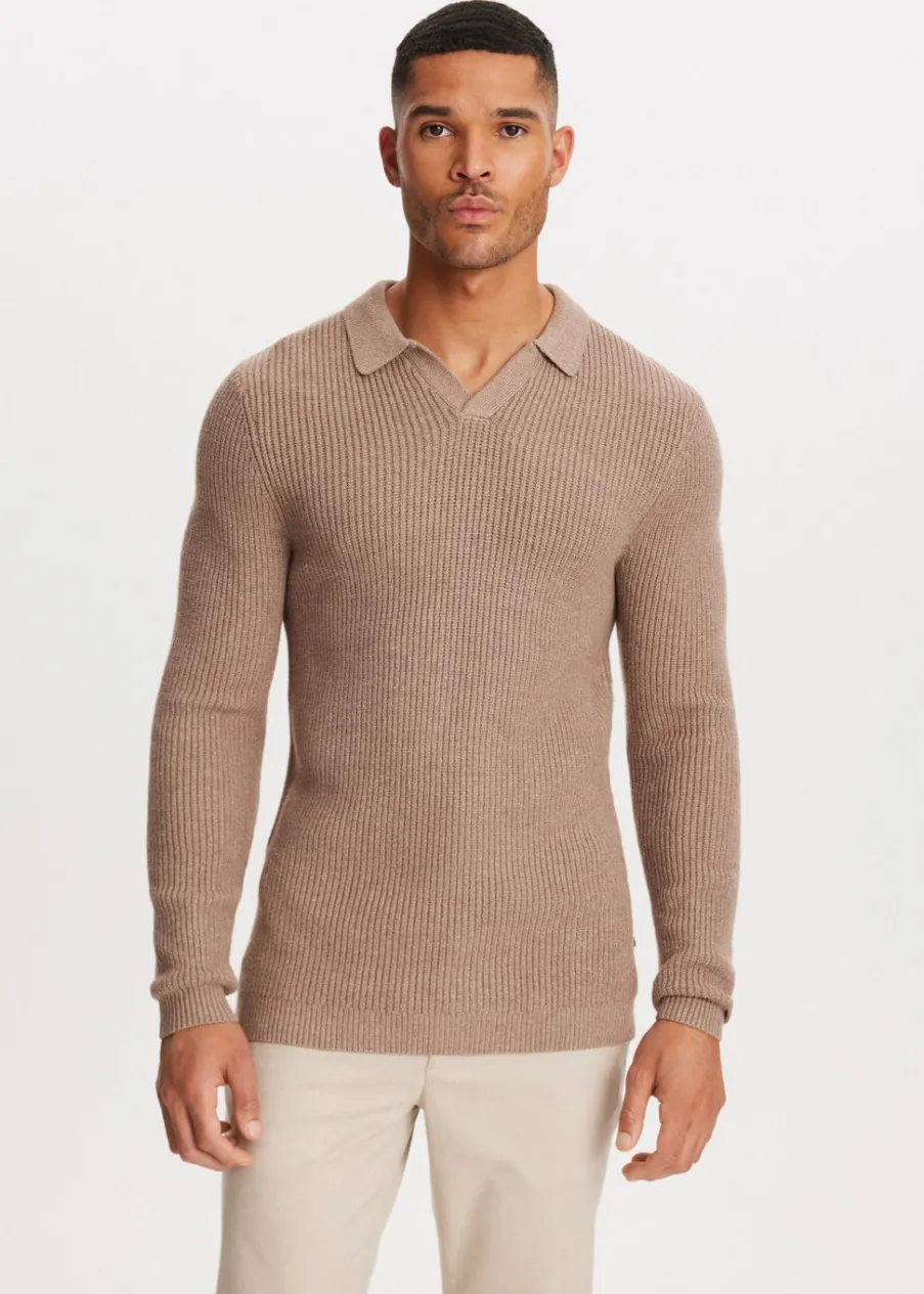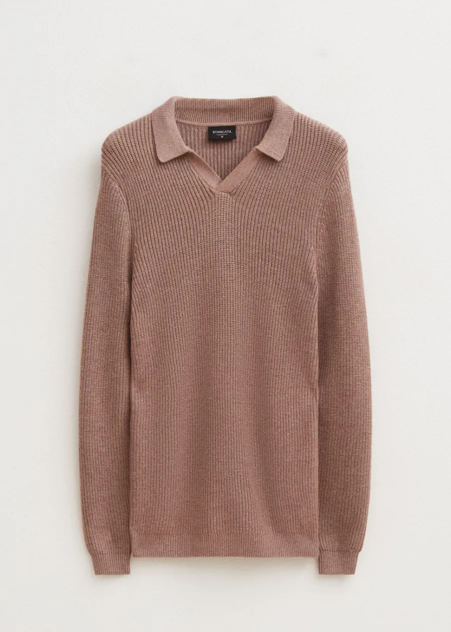 Deze polo van Stangata heeft lange mouwen, een open kraag en een aansluitende pasvorm. Deze polo is gekenmerkt door de structuur in de gebreide stof. Draag deze polo met een van onze broeken voor een alledaagse outfit.