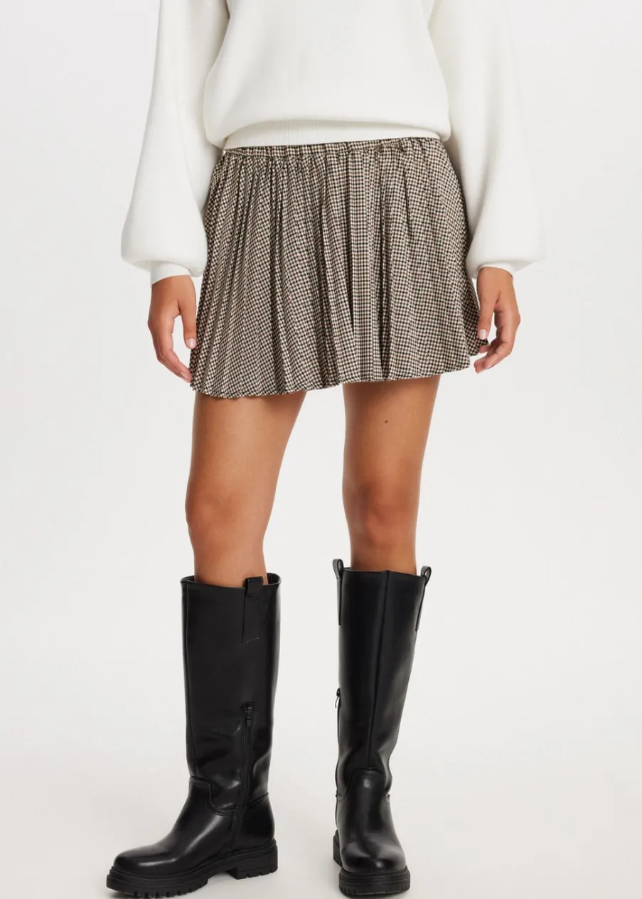 Deze rok van Amy & Ivy heeft een korte lengte en elegante plooien. De rok is gemaakt van een soepel vallende stof en is uitgevoerd met een stijlvol ruitpatroon. Combineer deze rok met een sweater voor een complete look.