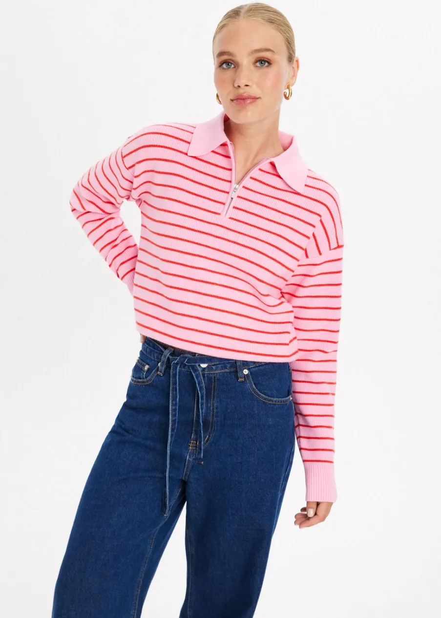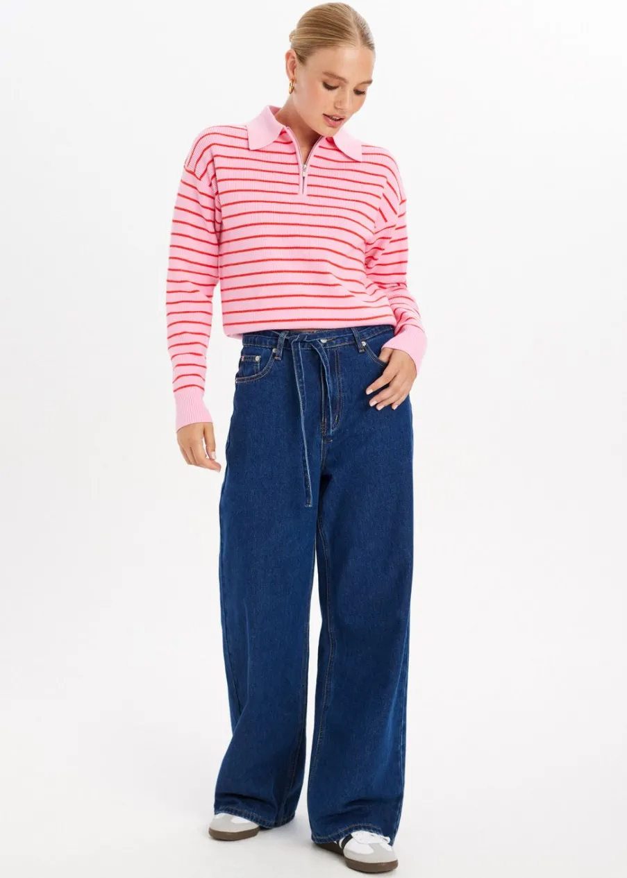 The Sting Gestreepte trui met half zip<DAMES Truien En Vesten