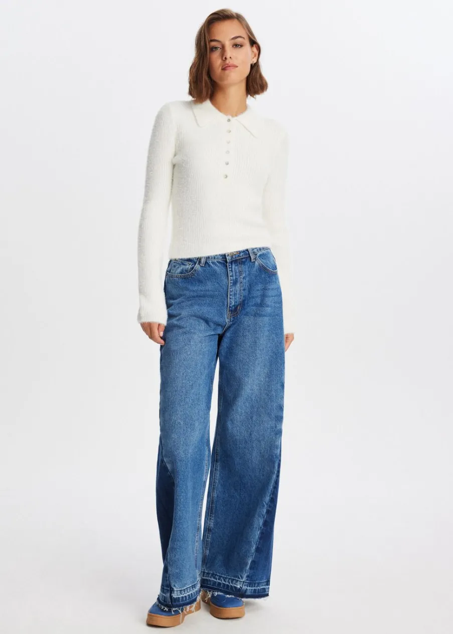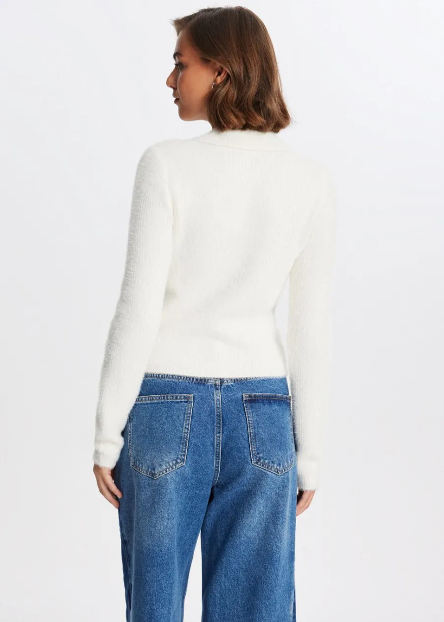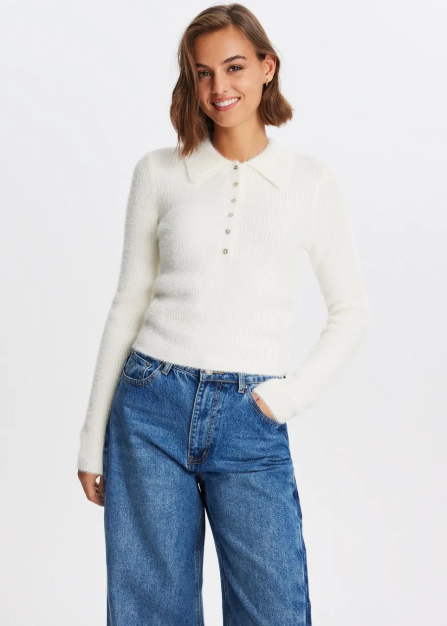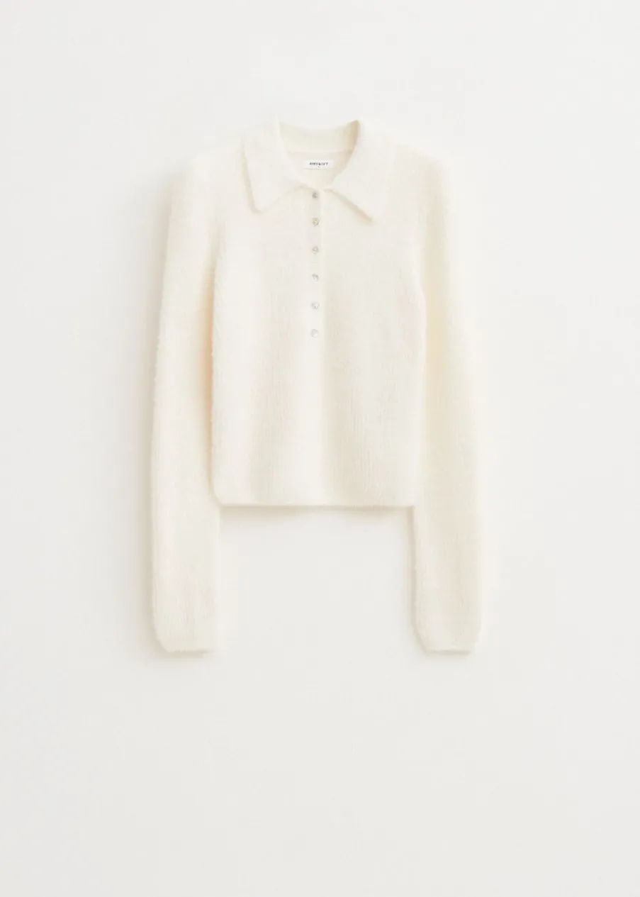 Deze polo heeft lange mouwen, een kraag met knoopsluiting en een normale pasvorm. De polo is gemaakt van een zachte, harige stof voor een cosy uitstraling. Combineer met een jeans voor een casual look.