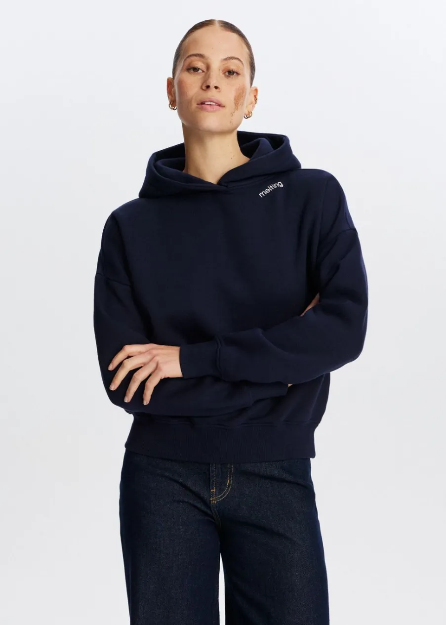 Deze hoodie heeft lange mouwen, een iets kortere, oversized pasvorm en een capuchon. Op de achterkant staat de geborduurde tekst “Melting”, die in het klein ook op de voorkant is terug te vinden. Combineer met een jeans voor een casual look.