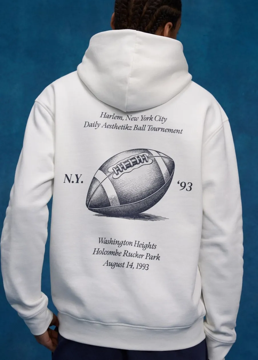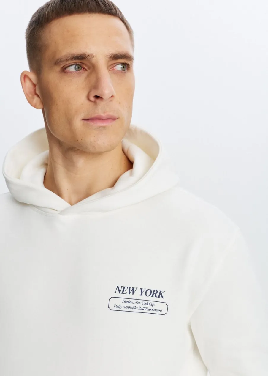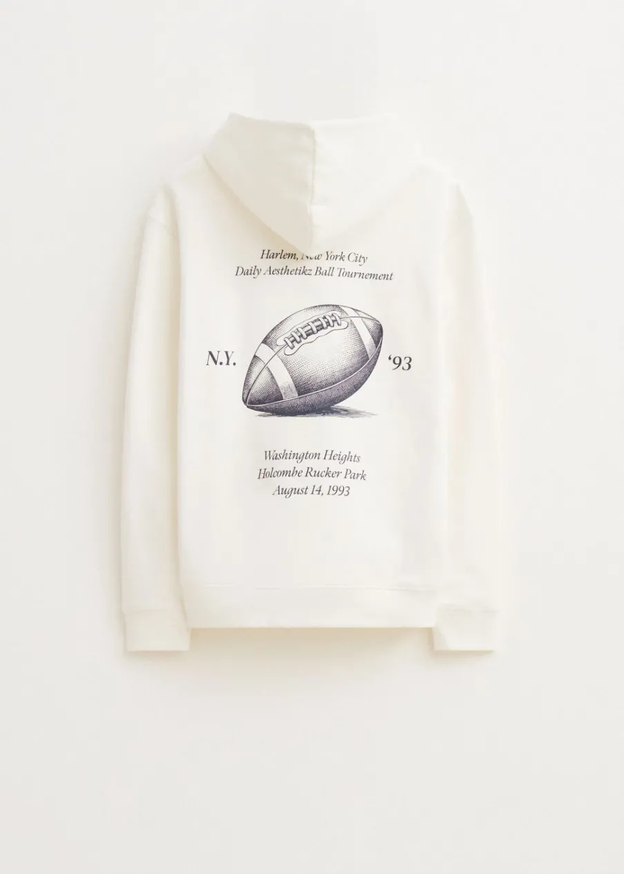 Deze hoodie van Daily Aesthetikz heeft lange mouwen, een capuchon en een relaxed pasvorm. Deze sweater is gekenmerkt door de rugbyprint op de rug en de hoodie is voorzien van een pouch pocket. Draag deze hoodie met een van onze t-shirts voor een warme outfit.