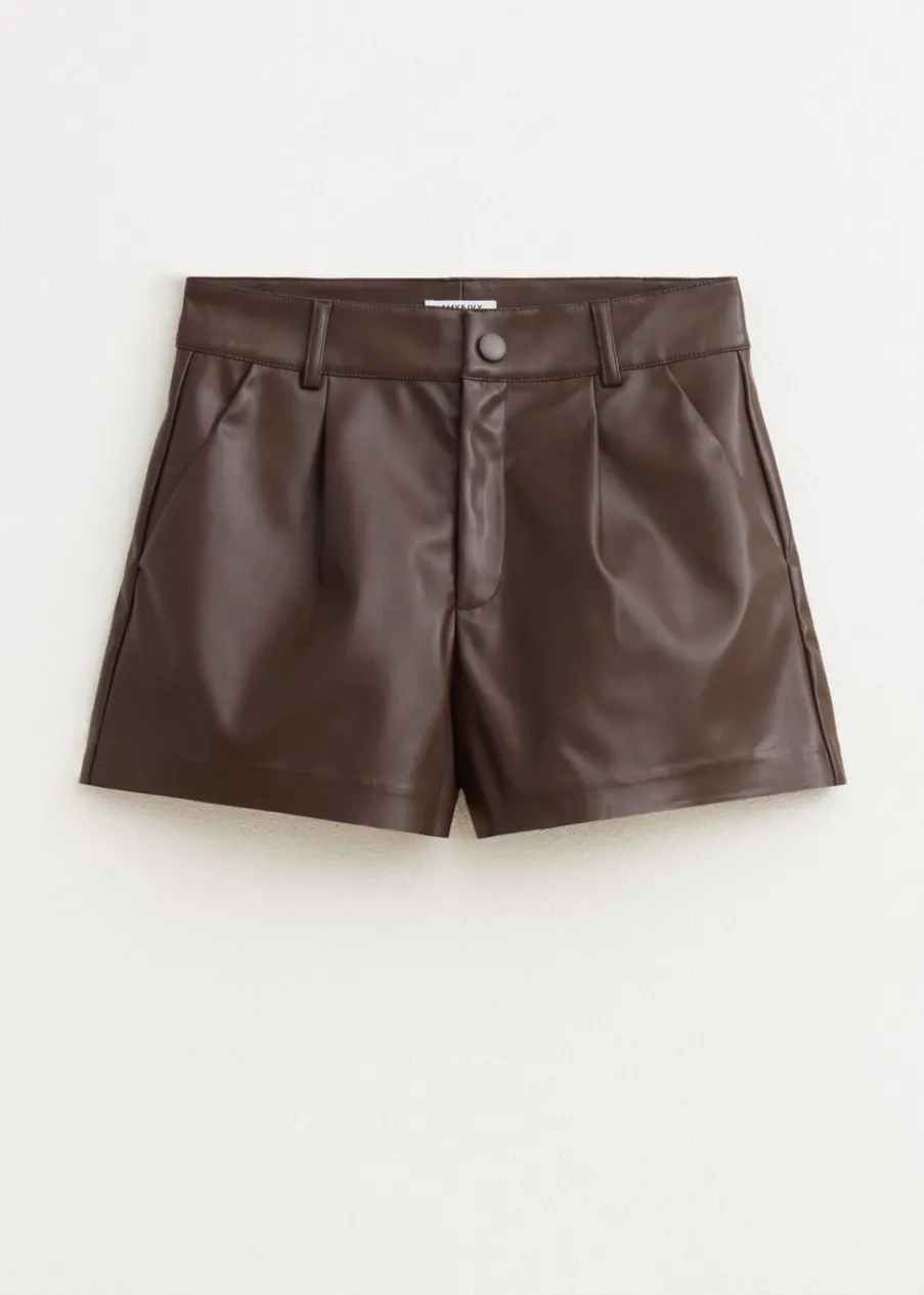 Deze short is gemaakt van een soepel PU-materiaal en heeft een hoge taille met plooien aan de voorkant. De short is voorzien van een knoop- en ritssluiting. Combineer deze short met een trui voor een complete herfstlook.
