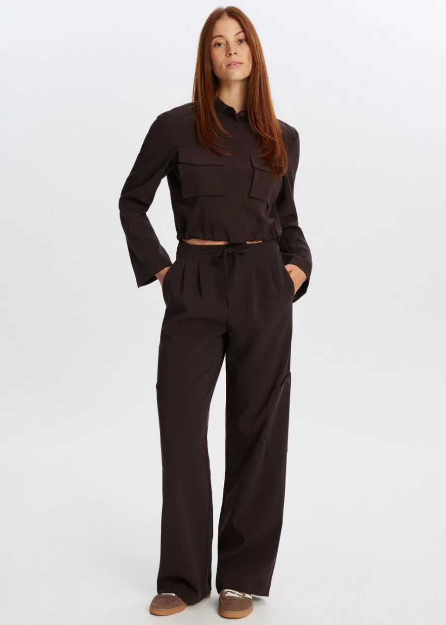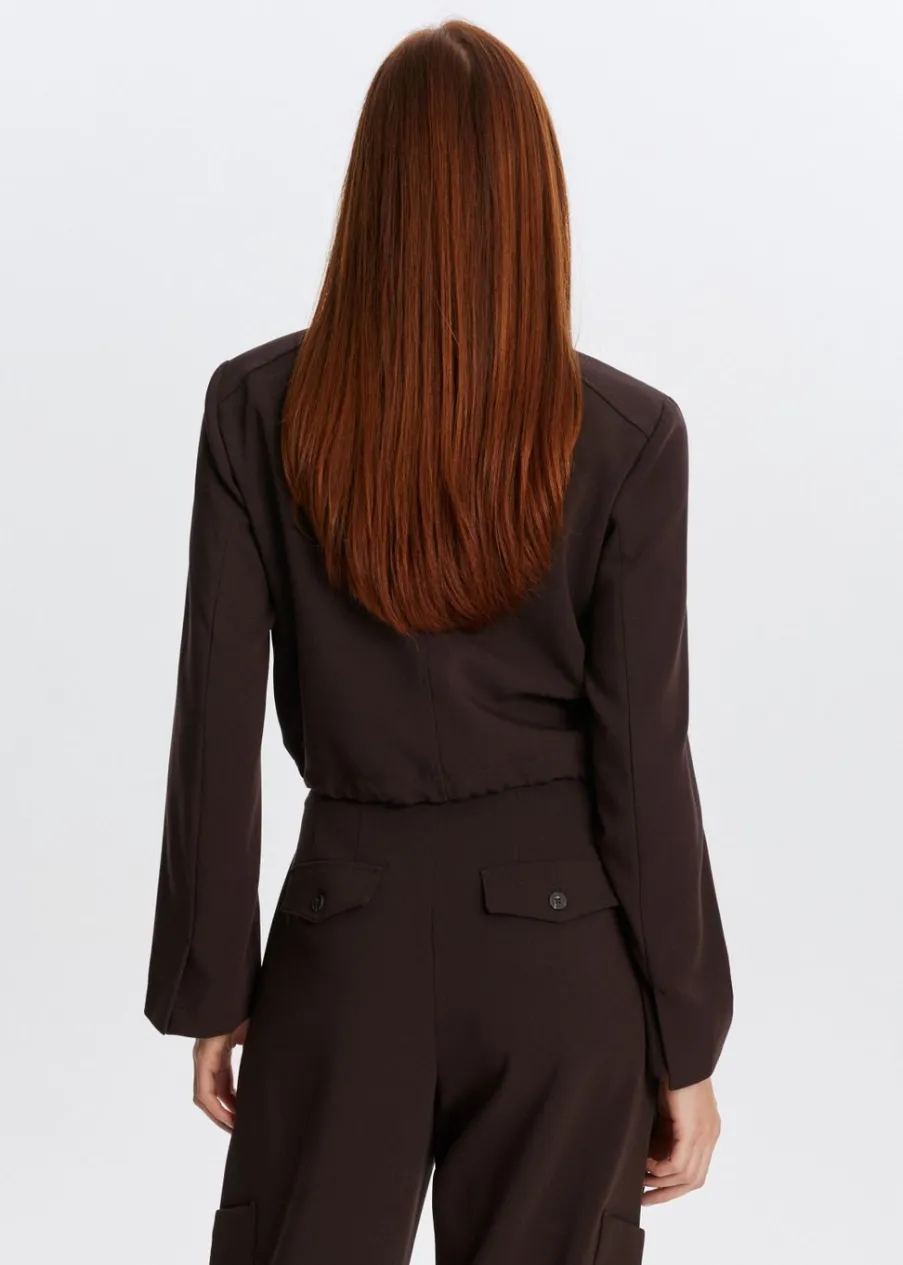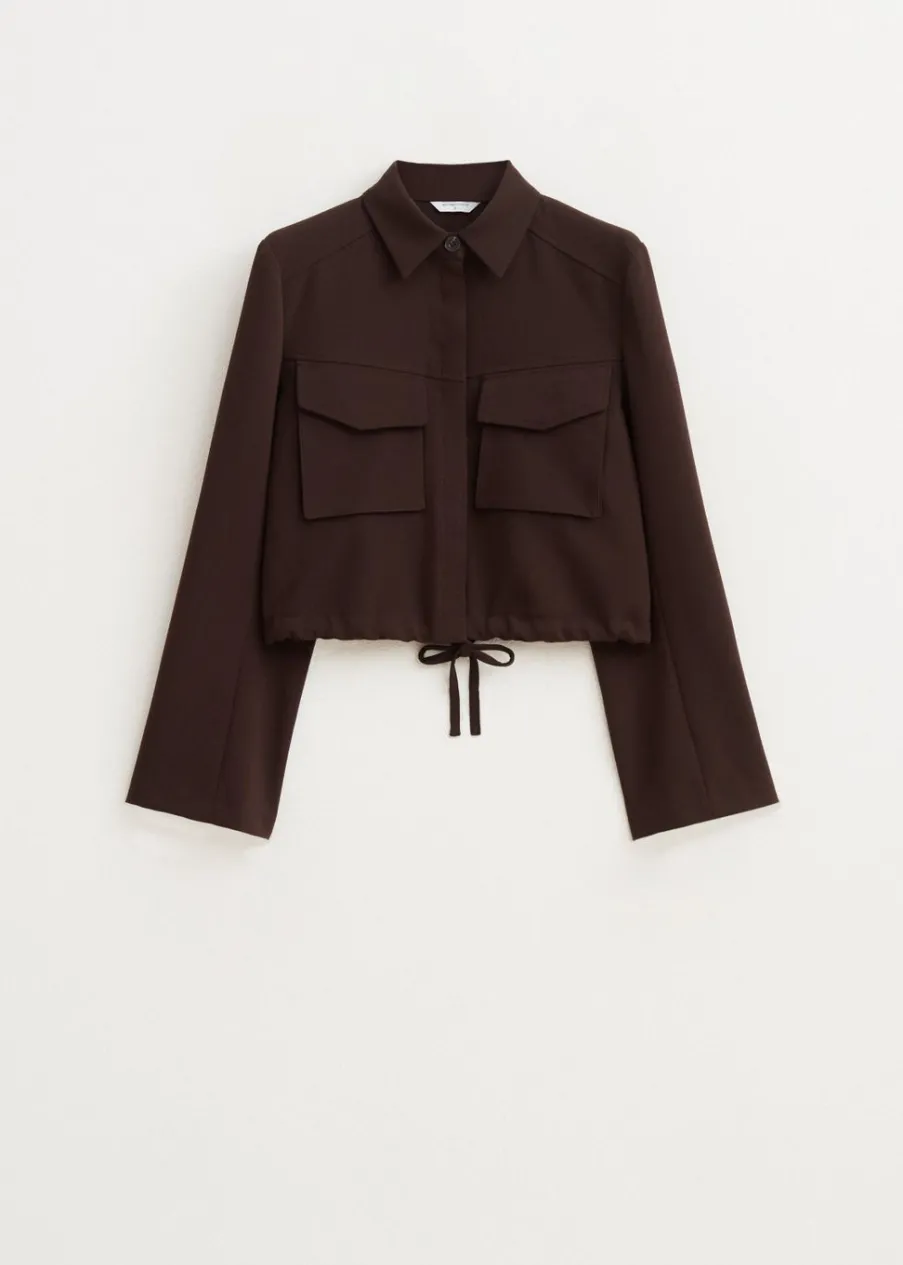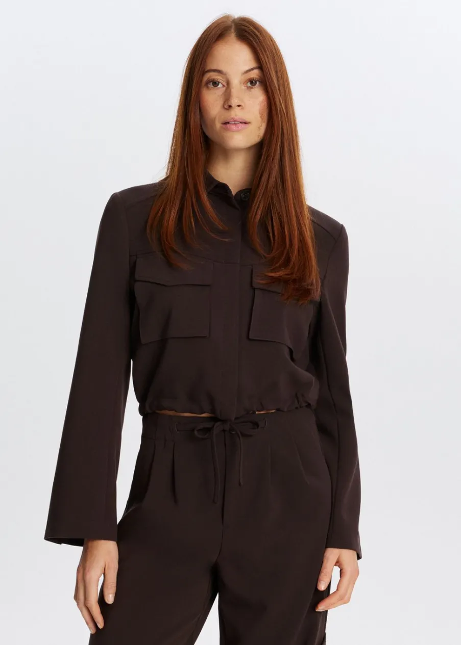 Dit jasje heeft lange mouwen, een kraag en een knoopsluiting. Voorzien van twee klepzakken aan de voorkant, een iets kortere pasvorm en een aantrekkoord aan de onderzijde. Combineer met een broek voor een stoere look.