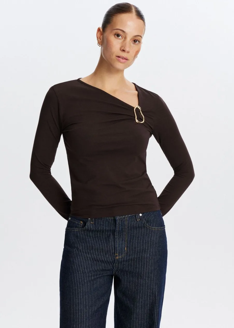Deze longsleeve top heeft een aangesloten pasvorm en is afgewerkt met een stijlvolle gespdetail. Combineer met een jeans voor een casual look.