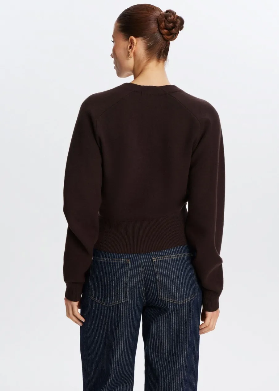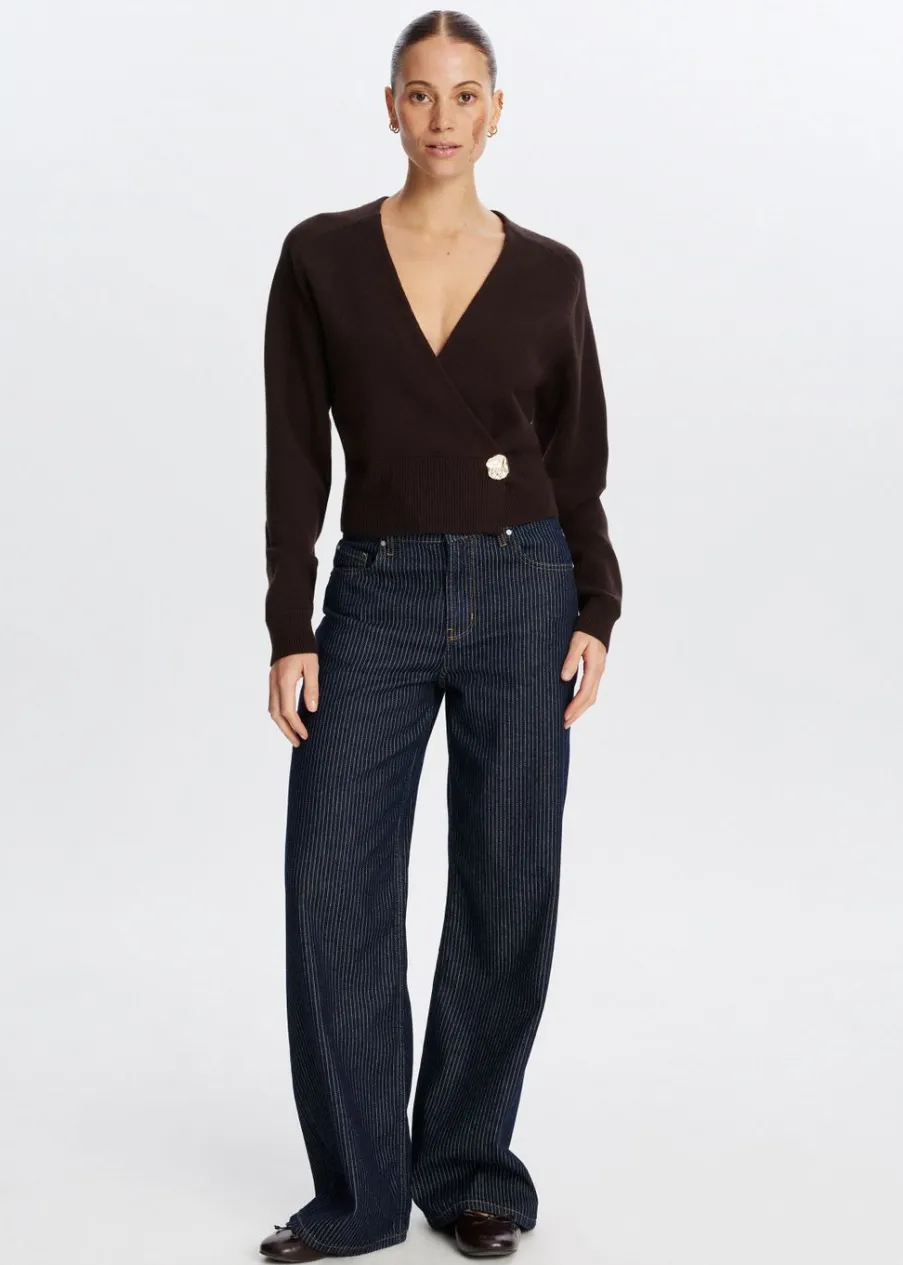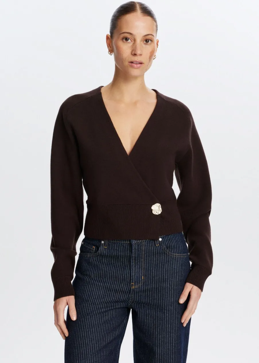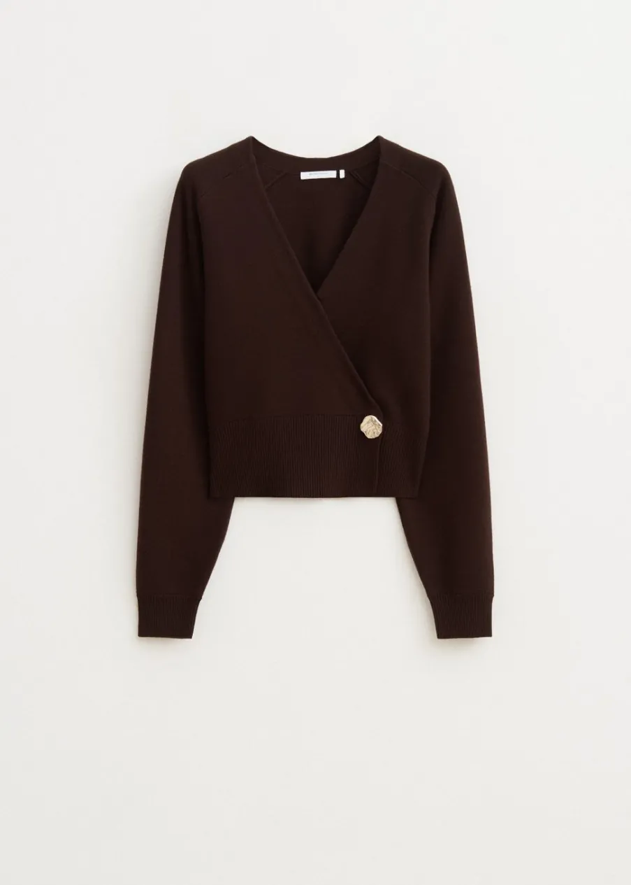 Dit truitje heeft lange mouwen, een normale fit en een lage V-hals. Het truitje is voorzien van een knoop aan de onderkant van de zijkant voor een overlappende fit. Combineer met een jeans voor een stijlvolle look.