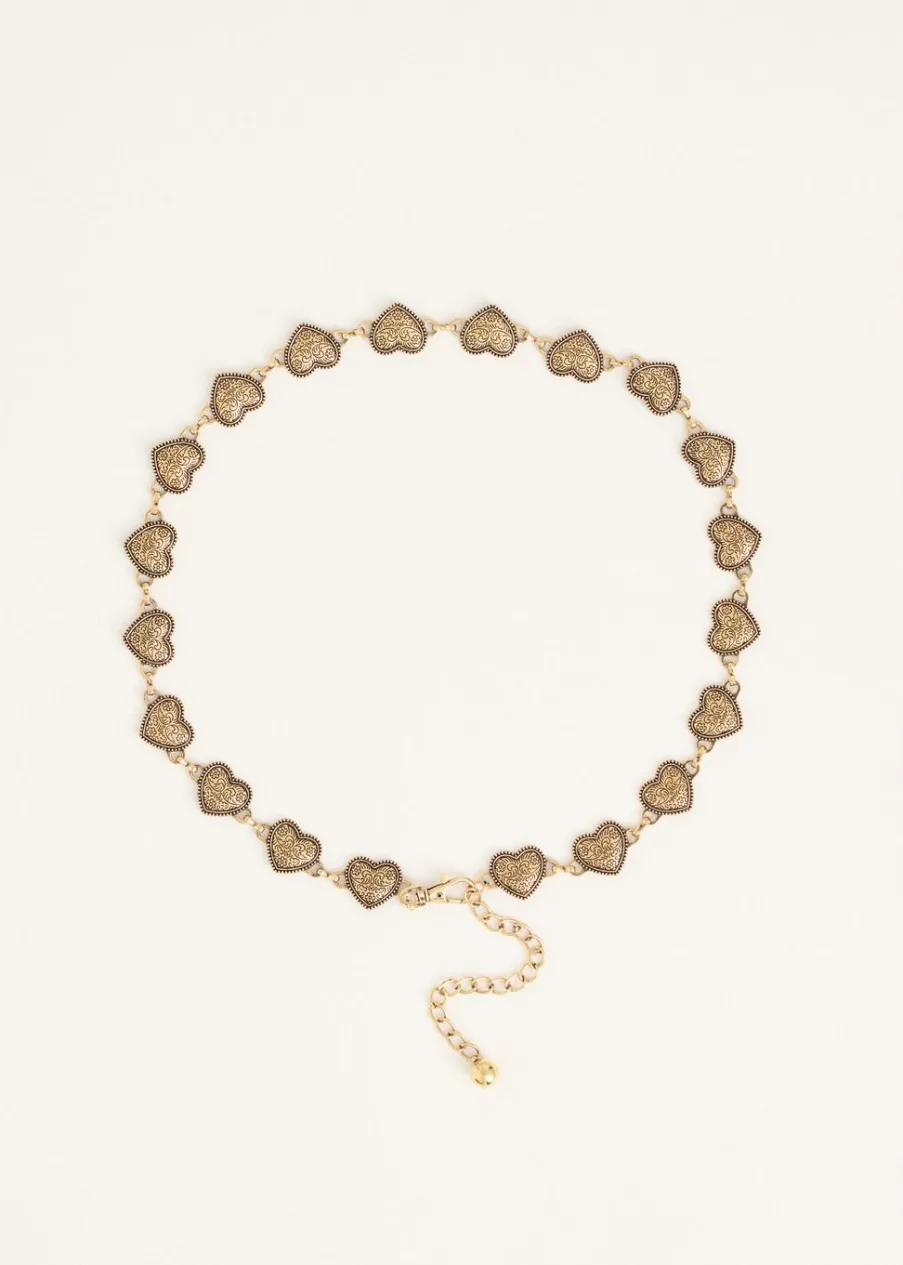 Deze kettingriem van Amy & Ivy is versierd met meerdere hartvormige bedeltjes. De riem is te sluiten met een karabijnsluiting en is verstelbaar in lengte. Perfect te combineren met een rok!