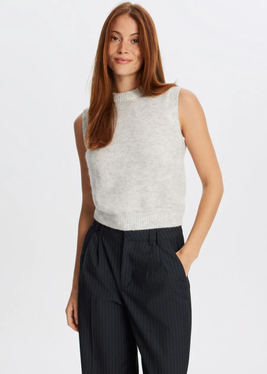 Deze spencer van Melting Stockholm is mouwloos en heeft een ronde hals. Verder is de spencer gemaakt van een zachte wolmix voor een warme fit. Draag deze spencer met een van onze broeken voor een stijlvolle look.
