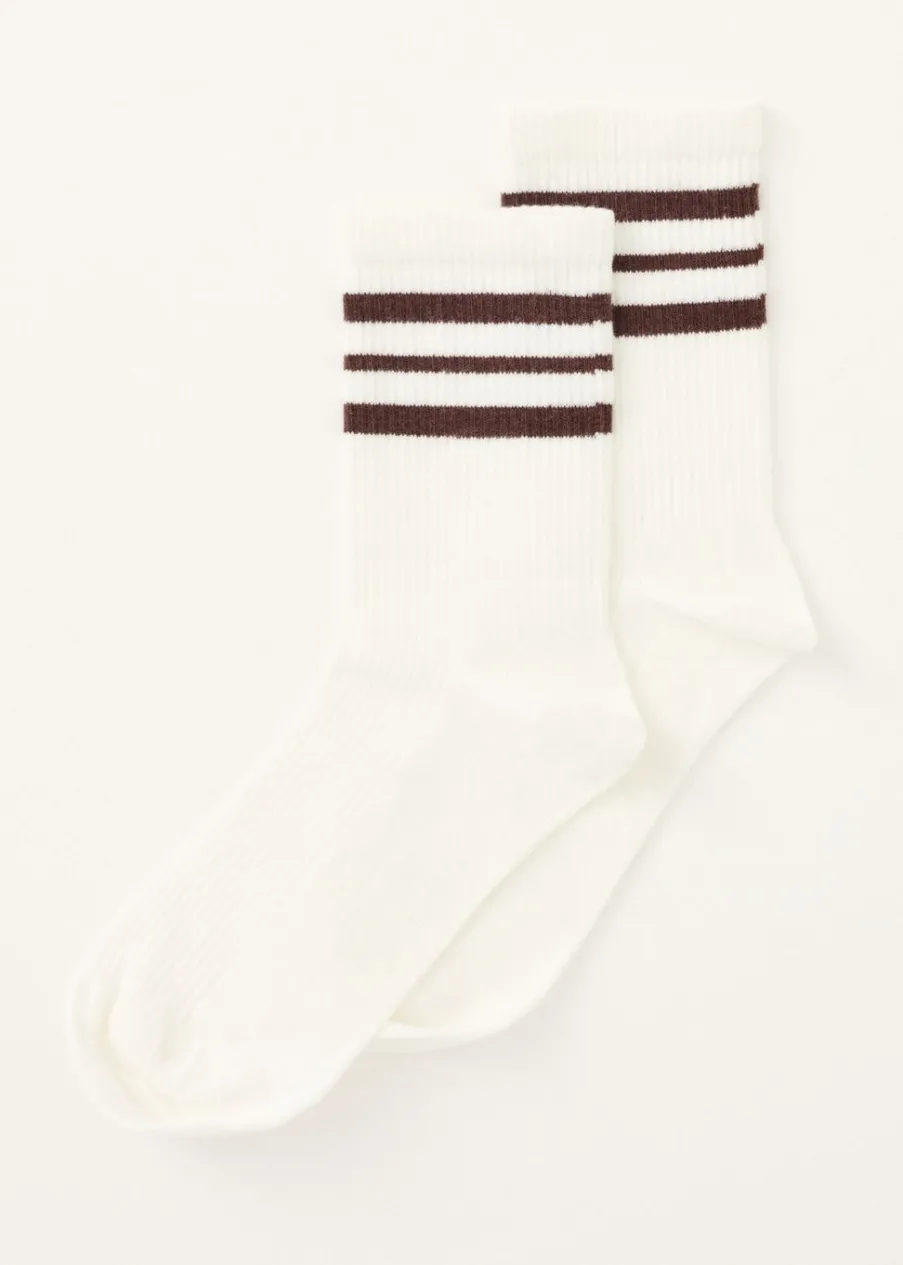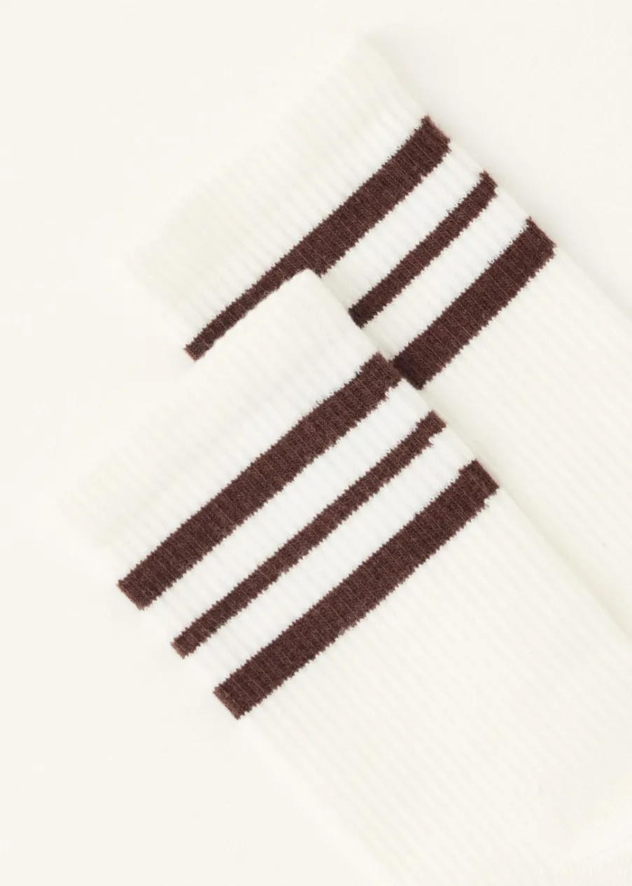 Deze sporty sokken van Amy & Ivy zijn voorzien van strepen op de bovenkant. Match deze sokken met een van onze hoodies of sweaters voor een sportieve look.