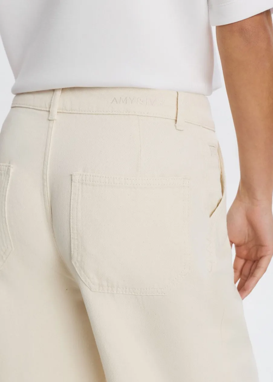 Deze jeans heeft een rechte pasvorm met een lichte baggy fit. De jeans is voorzien van een knoop- en ritssluiting, twee steekzakken aan de voorkant en twee zakken aan de achterkant. Perfect te dragen met een van onze basic items.