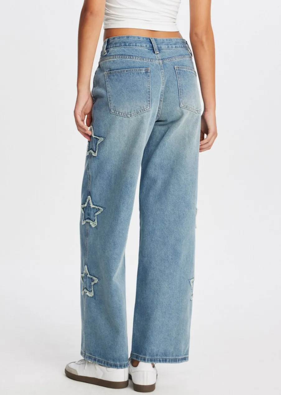 Deze jeans heeft een straight fit en sluit met een knoop- en ritssluiting. De jeans is voorzien van twee zakken aan zowel de voor- als achterkant. De opvallende drie sterren aan de zijkanten geven de jeans een speelse touch. Combineer met een van onze singlets voor een stijlvolle look.