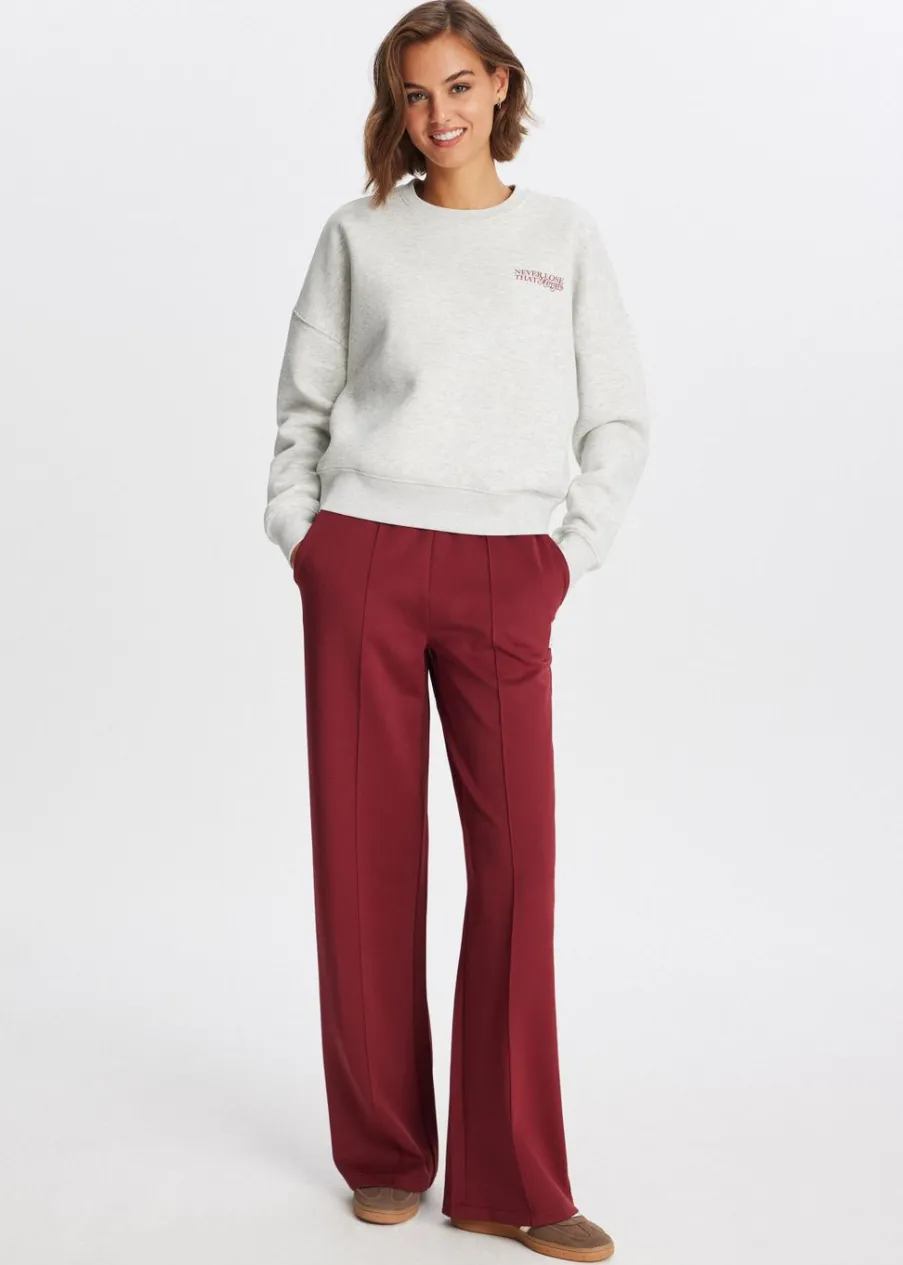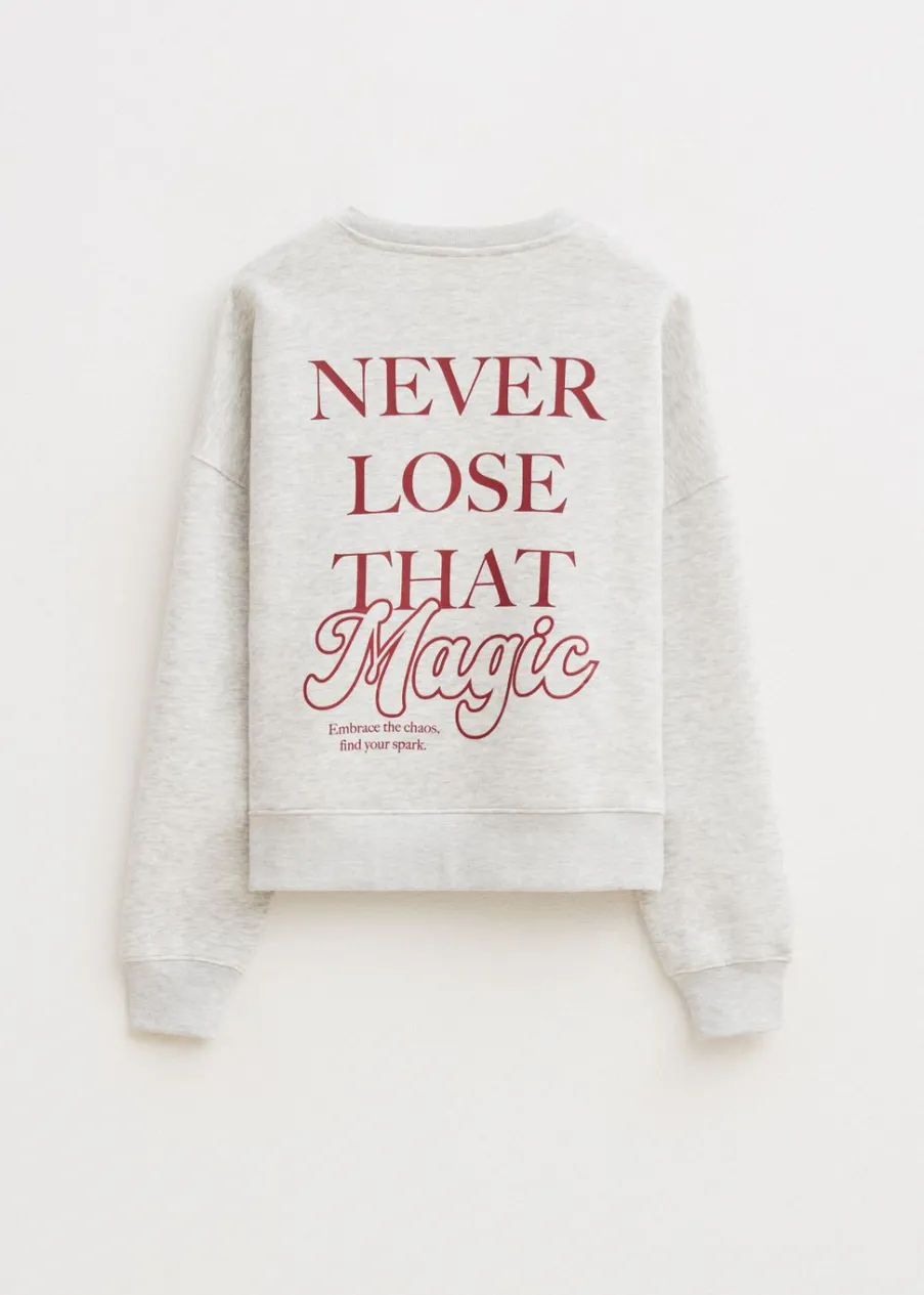 Deze sweater heeft een crewneck, lange mouwen en een regular fit. Op de achterkant staat een opvallende print met tekst, die in het klein terugkomt op de voorkant. Draag de trui met een broek voor een casual look.