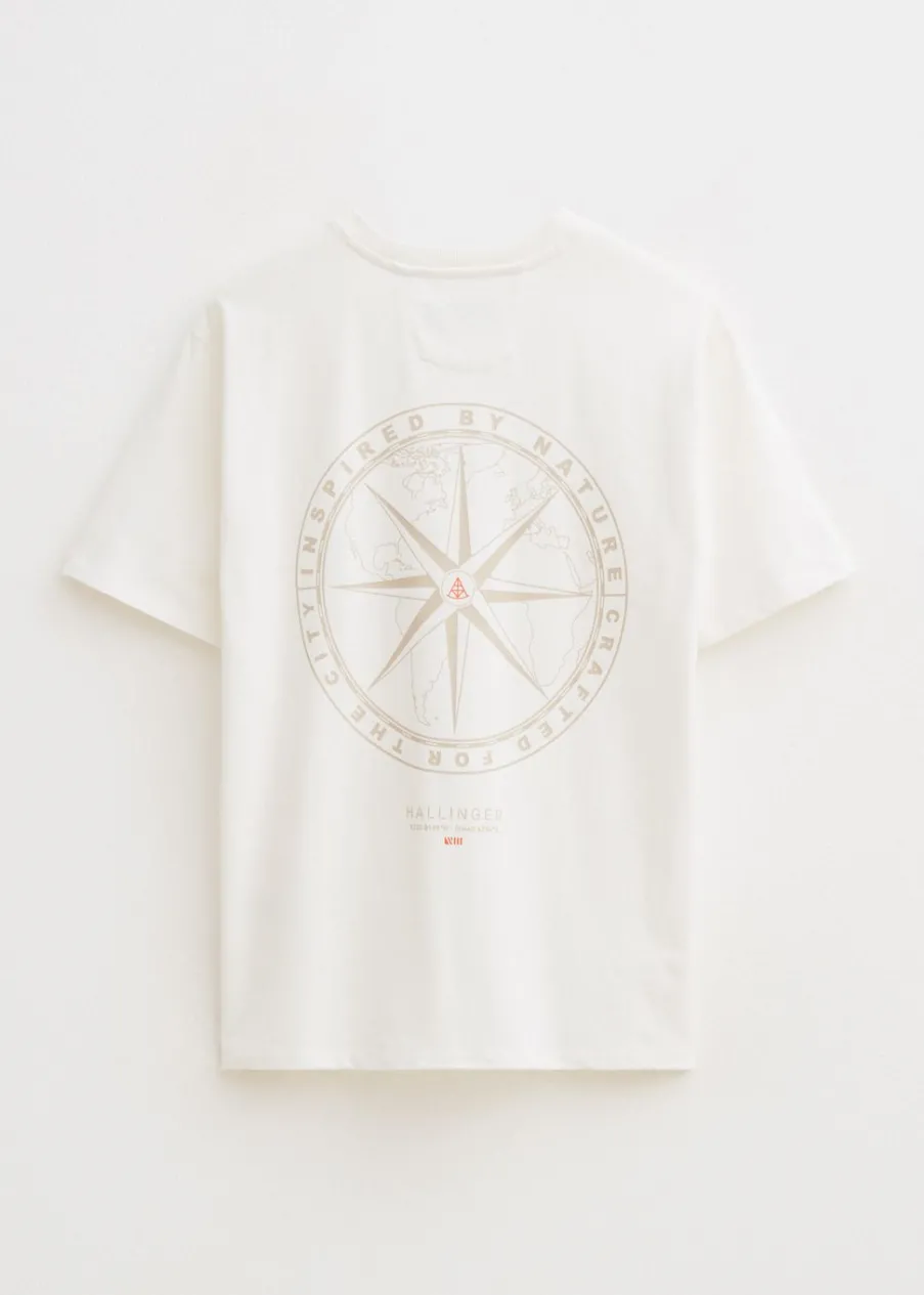 Dit t-shirt van Hallinger heeft korte mouwen, een ronde hals en een relaxed pasvorm. Het t-shirt is gekenmerkt door een grote backprint van een kompas. Draag dit t-shirt met een van onze broeken voor een casual look