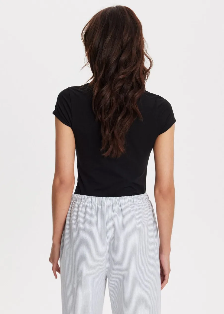 T-shirt zacht van het merk Amy & Ivy. Het t-shirt heeft korte mouwen, een ronde hals en een aansluitende pasvorm. Dit t-shirt is gemaakt van een zachte stof. Combineer dit shirt met een van onze truien of vesten voor een warme outfit.