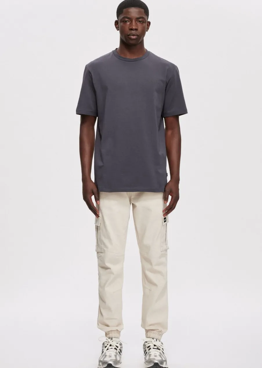 Twill cargobroek van het merk Daily Aesthetikz. De broek heeft een striksluiting en is voorzien van twee steekzakken en twee zakken met klep. De broekspijpen hebben elastische boorden op enkelhoogte. Combineer deze broek met een van onze sweaters of hoodies hier voor een stoere look.