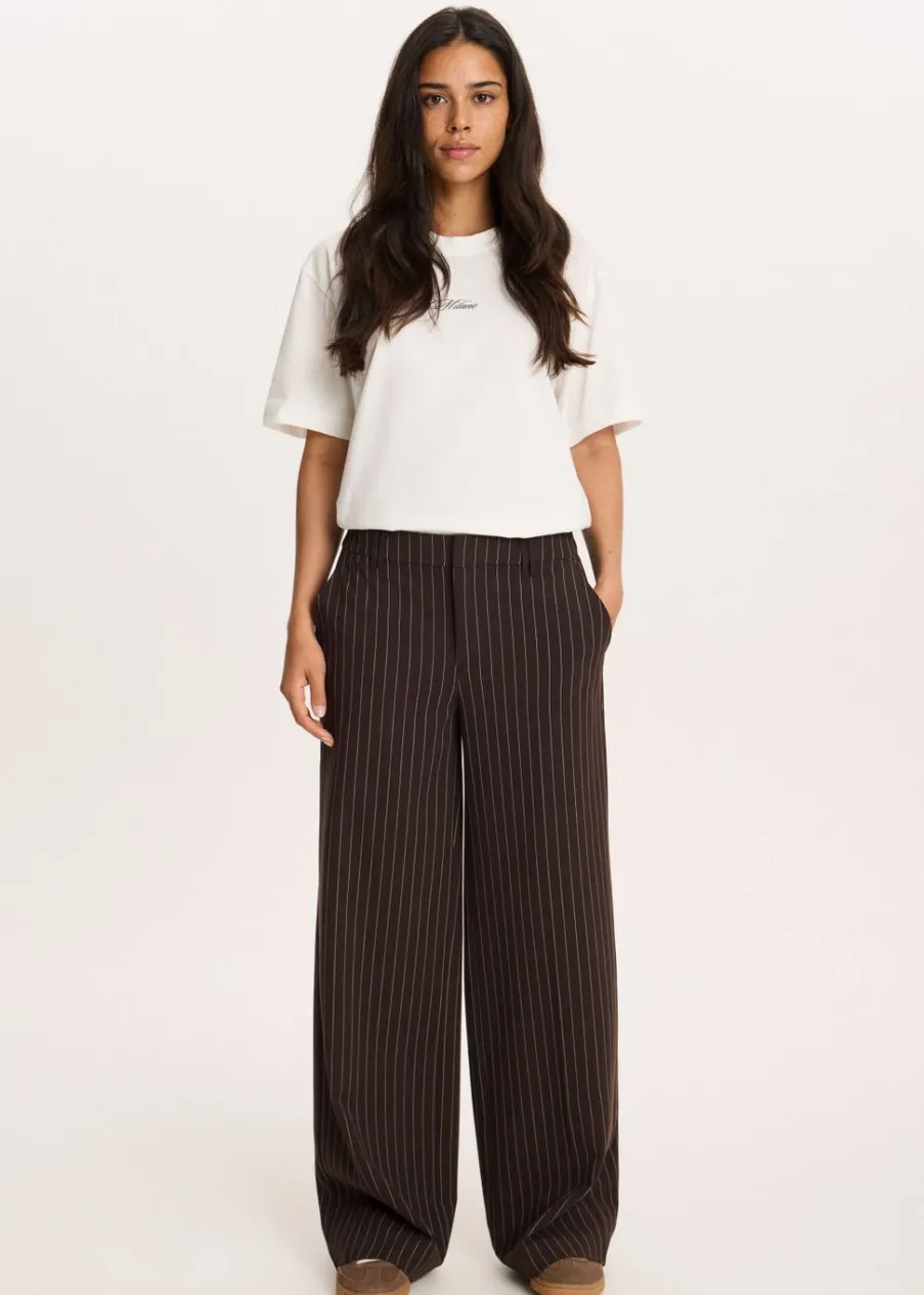 Deze broek van Melting Stockholm heeft een comfortabele wide leg pasvorm en is voorzien van stijlvolle strepen. Het model sluit met een schuif- en ritssluiting en heeft twee steekzakken aan de voorkant. Combineer met een t-shirt voor een casual look.