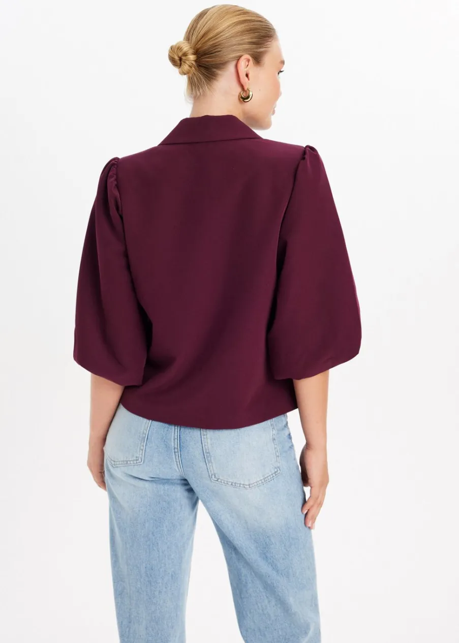Deze blazer heeft een knoopsluiting en pofmouwen als elegant detail. De blazer heeft twee paspelzakken aan de voorkant. Stijl deze blazer met een van onze broeken voor een trendy look.