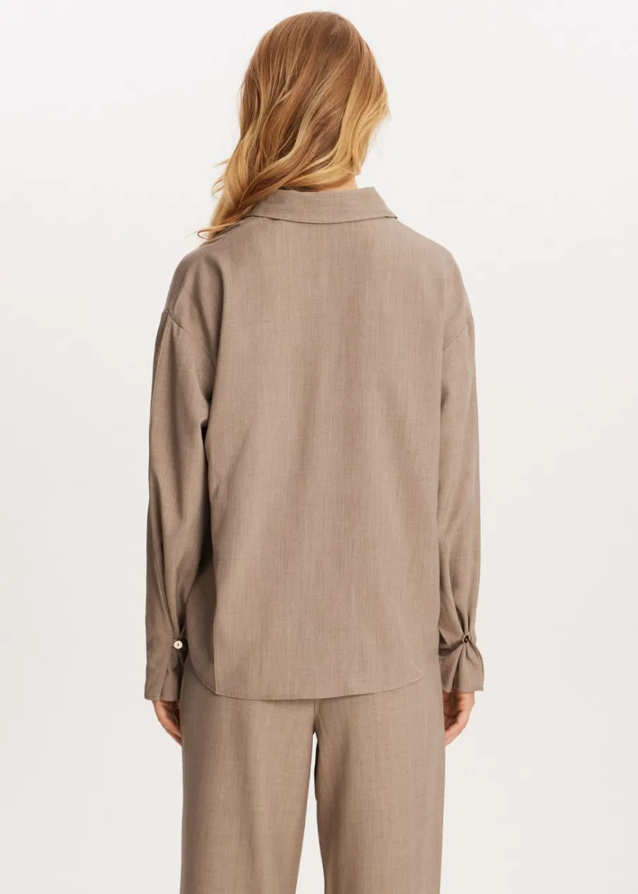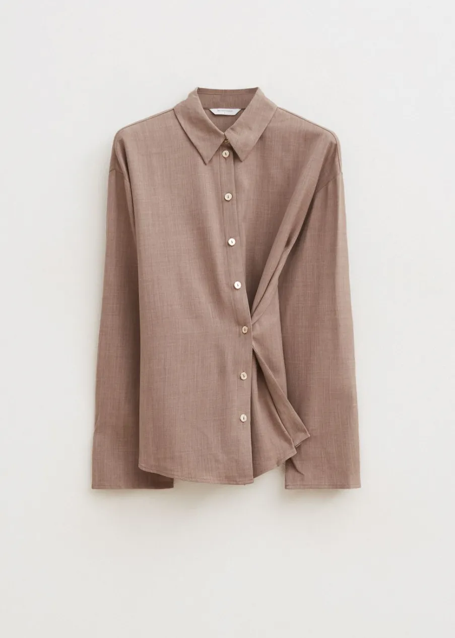 Deze blouse van Melting Stockholm heeft een lange, losvallende pasvorm en is uitgevoerd met lange mouwen. De voorkant is voorzien van een stijlvolle knoopsluiting met een subtiel detail. Combineer de blouse met een broek voor een casual look.