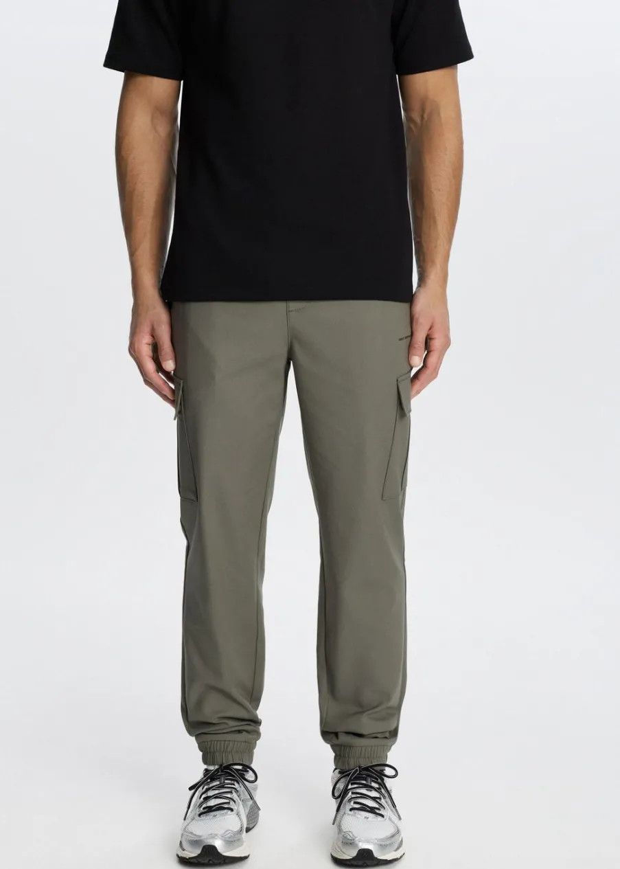 Deze broek heeft een elastische tailleband met striksluiting en een comfortabele cargo-look. De broek is voorzien van twee klepzakken aan de zijkanten en een klein logo op de zijkant. Combineer met een T-shirt voor een casual outfit.