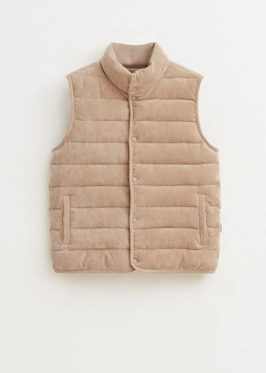 Corduroy bodywarmer van het merk Lost Minds. De bodywarmer is mouwloos, heeft een knoopsluiting en een aansluitende pasvorm. Deze bodywarmer is gekenmerkt met corduroy detail. Stijl deze bodywarmer met een van onze jeans voor een warme outfit.