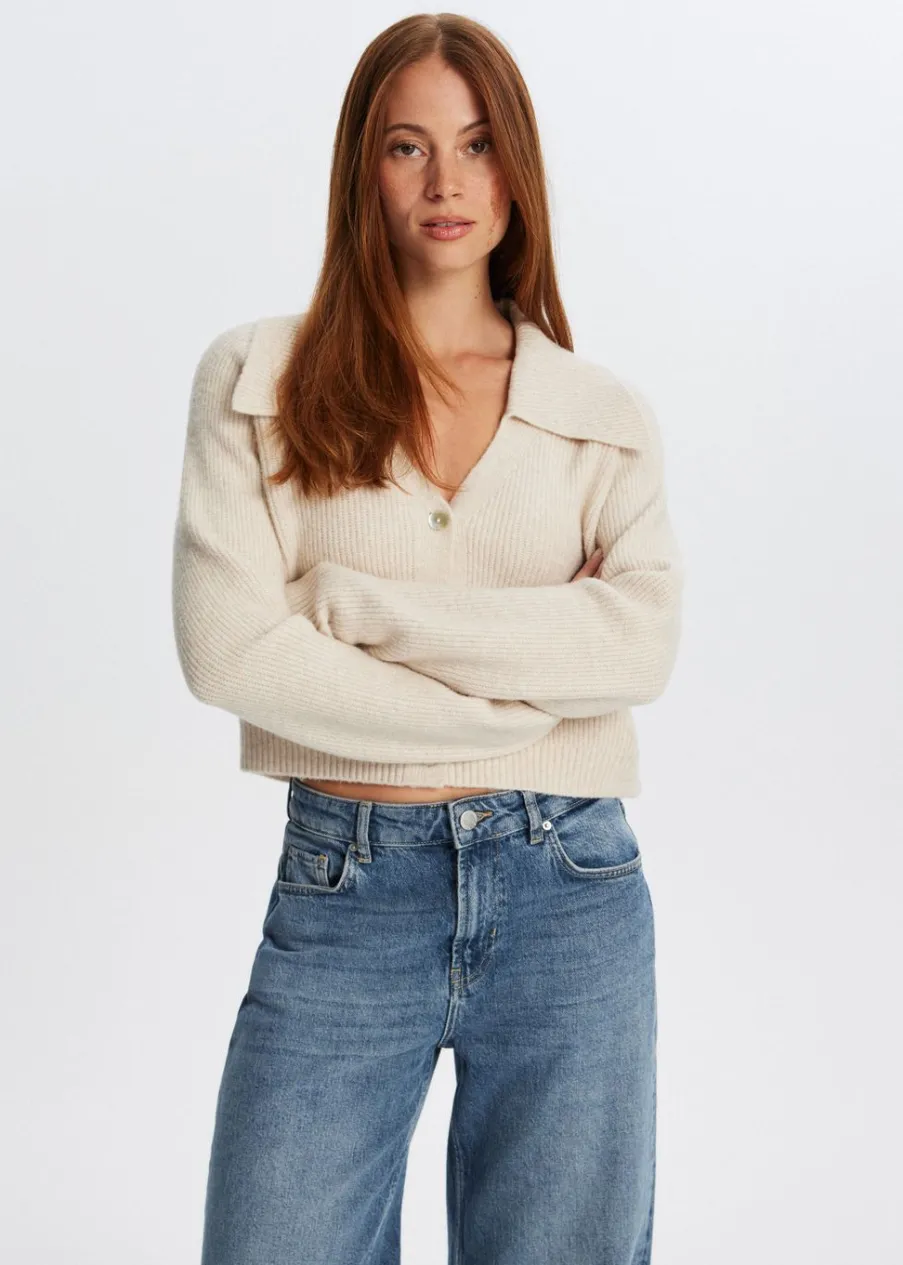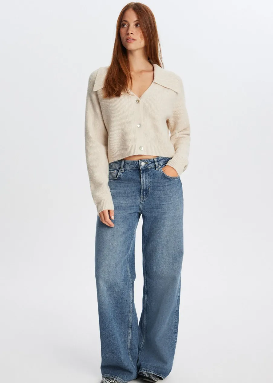 Dit gebreide vest heeft lange mouwen en een losvallende pasvorm. Het is voorzien van een v-hals, een brede kraag en drie knopen aan de voorkant. Combineer met een jeans voor een casual look.