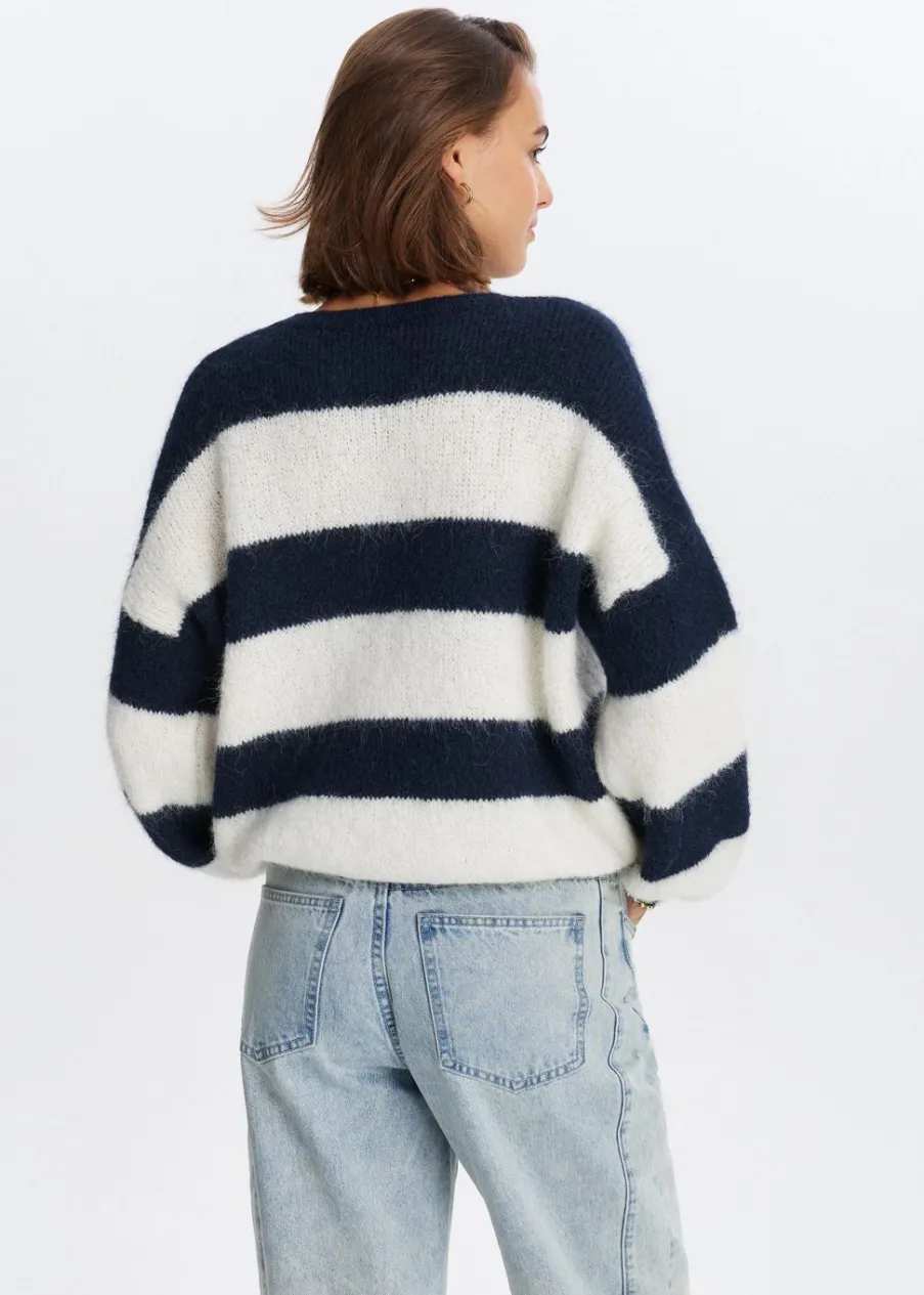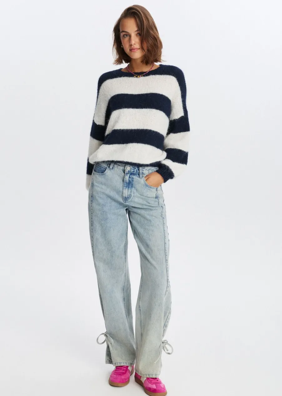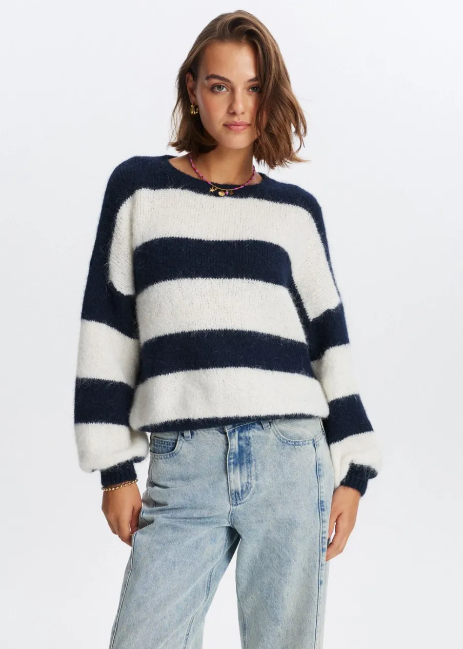 Deze trui heeft lange mouwen, een ronde hals en een regular fit. De harige structuur en speelse strepen geven de trui net dat beetje extra. Perfect te combineren met een jeans voor een cozy look.