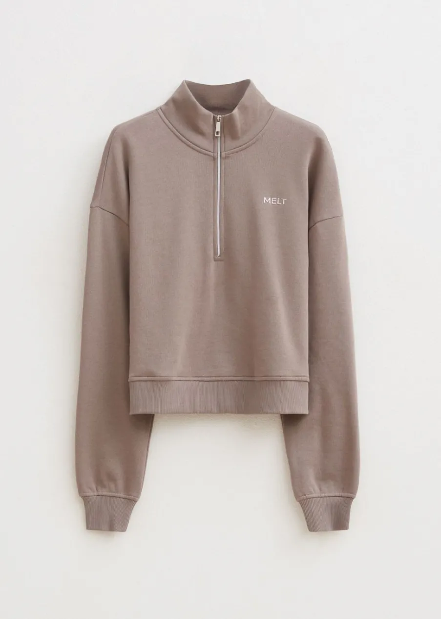 Deze sweater van Melting Stockholm heeft lange mouwen, een opstaande kraag en een halve ritssluiting aan de voorkant. De half-zip sweater is voorzien van een subtiele merktekst. Deze sweater is perfect te combineren met een jeans voor een casual look.
