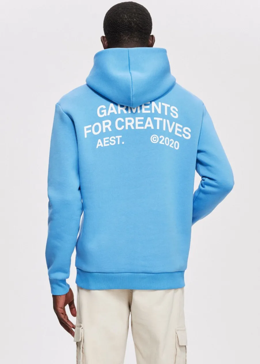 Deze hoodie van het merk Daily Aesthetikz heeft lange mouwen, een capuchon en een relaxed pasvorm. Deze hoodie is gekenmerkt door een print met de tekst “garments for creatives” op de rug. Draag deze hoodie met een van onze broeken voor een casual look.