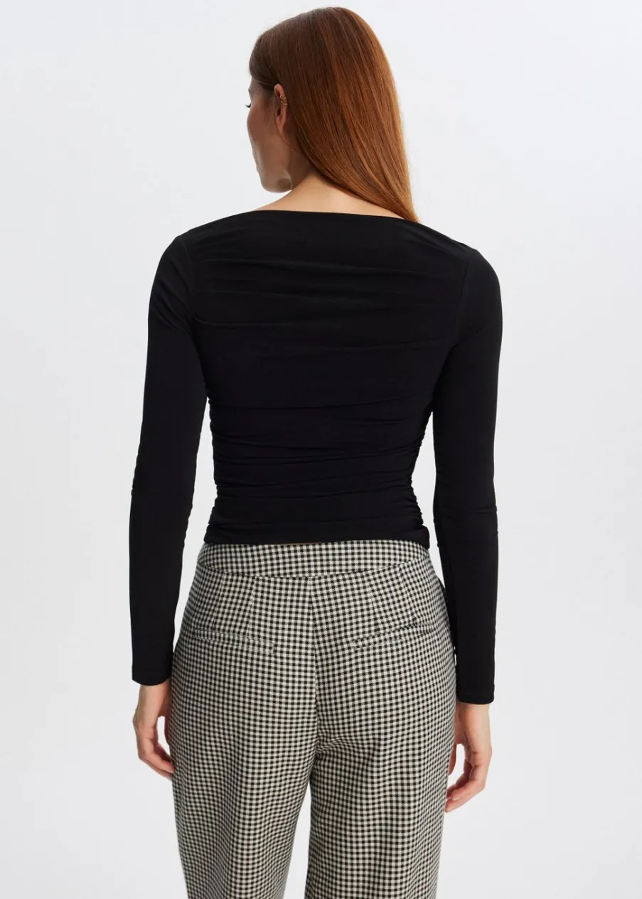 Deze longsleeve van Melting Stockholm heeft een boothals, lange mouwen en subtiele plooien aan de zijkanten. De top is gemaakt van een zachte stof en heeft een comfortabele pasvorm die mooi aansluit op het lichaam. Combineer deze top met een jeans of een broek voor een casual look.