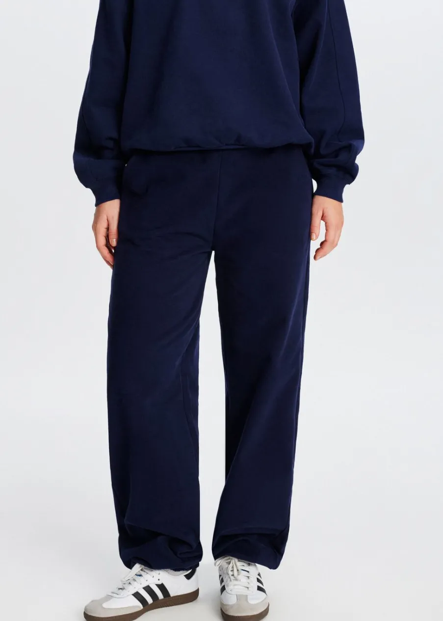 Deze broek heeft een elastische tailleband en twee steekzakken. Hij heeft een oversized fit en een cuff aan de onderkant. Combineer met een sweater voor een comfortabele look.