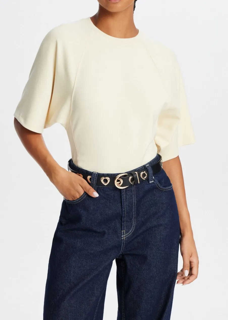 Deze riem is het perfecte accessoire om je look een speelse uitstraling te geven. De riem is voorzien van een gesp en hartvormige oogjes, die zorgen voor een trendy touch. Combineer ‘m met een jeans of jurk om je taille te accentueren en je outfit helemaal af te maken.