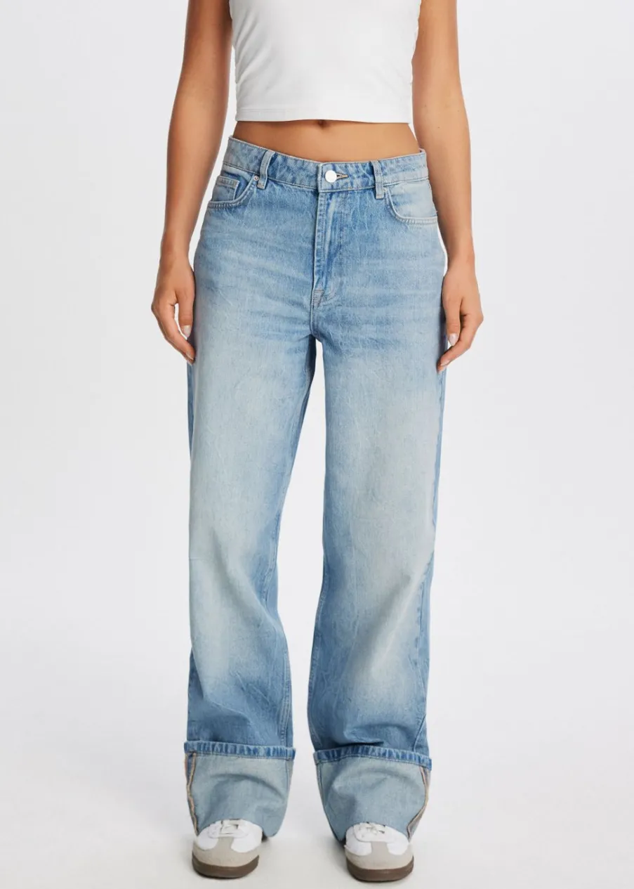 Deze jeans heeft een knoop- en ritssluiting. Het model heeft een straight leg met omgeslagen zoom (roll-up) en is voorzien van twee zakken aan de voor- en achterkant. Combineer met een top voor een casual look.