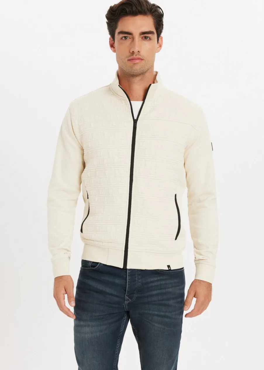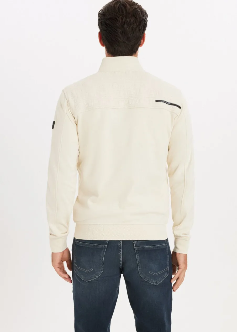 Deze sweater van Hallinger heeft lange mouwen, een opstaande kraag en een relaxed pasvorm. Deze sweater is gekenmerkt door een patroon met structuur geborduurd in de stof. Verder is de sweater voorzien van twee steekzakken. Draag deze sweater met een van onze jeans voor een casual look.