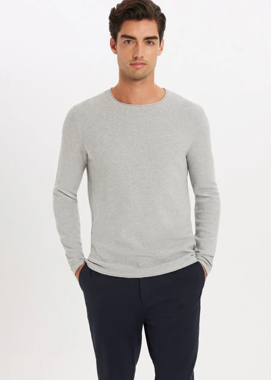 Deze gebreide trui van Hallinger heeft lange mouwen, een ronde hals en een comfortabele pasvorm. De trui is gemaakt van een gemĂȘleerde stof met een opvallende structuur. Combineer met een jeans voor een casual look.