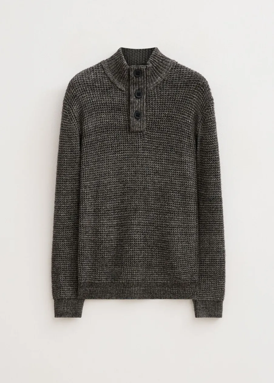 Deze trui van Hallinger heeft lange mouwen, een hoge hals en een normale pasvorm. De trui is gekenmerkt door de gebreide melange stof en de knopen met het logo van het merk bij de hals. Draag deze trui met een van onze jeans voor een stoere look.
