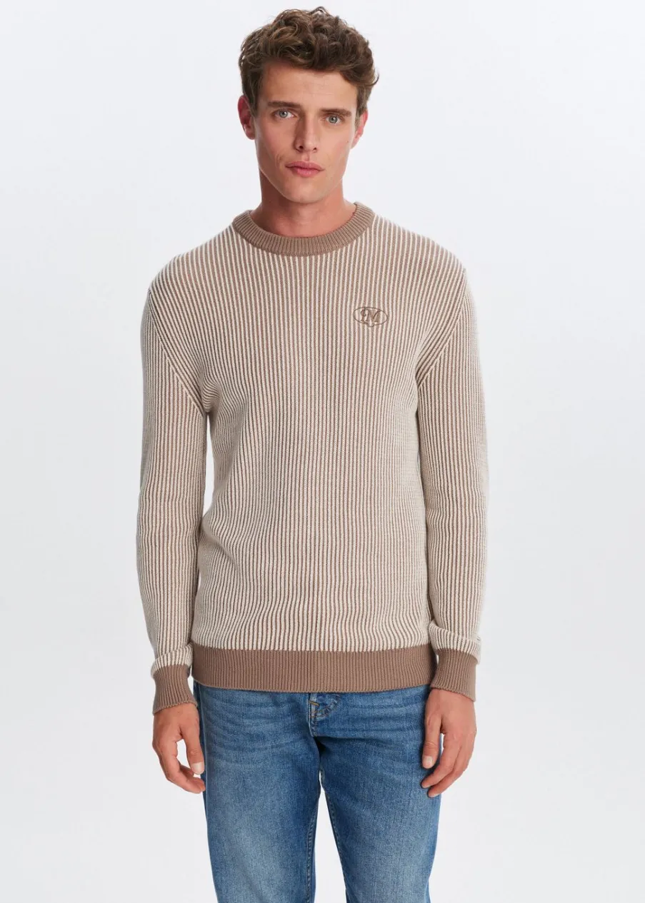 Deze gebreide trui van Lost Minds heeft lange mouwen, een ronde hals en een relaxed pasvorm. Het logo van het merk is subtiel geborduurd op de borst en er zit een gestreept patroon in de zachte stof. Draag deze trui met een van onze jeans voor een casual look.