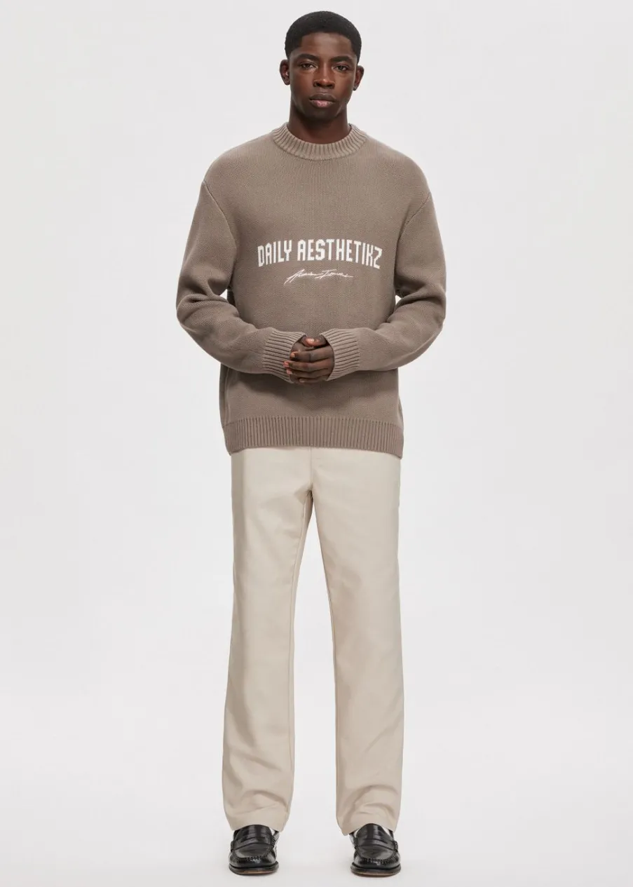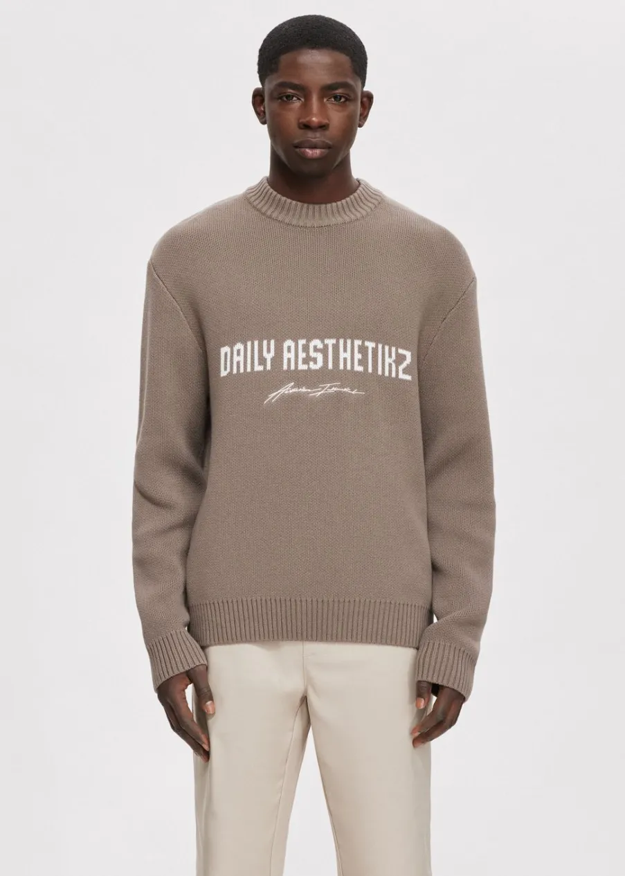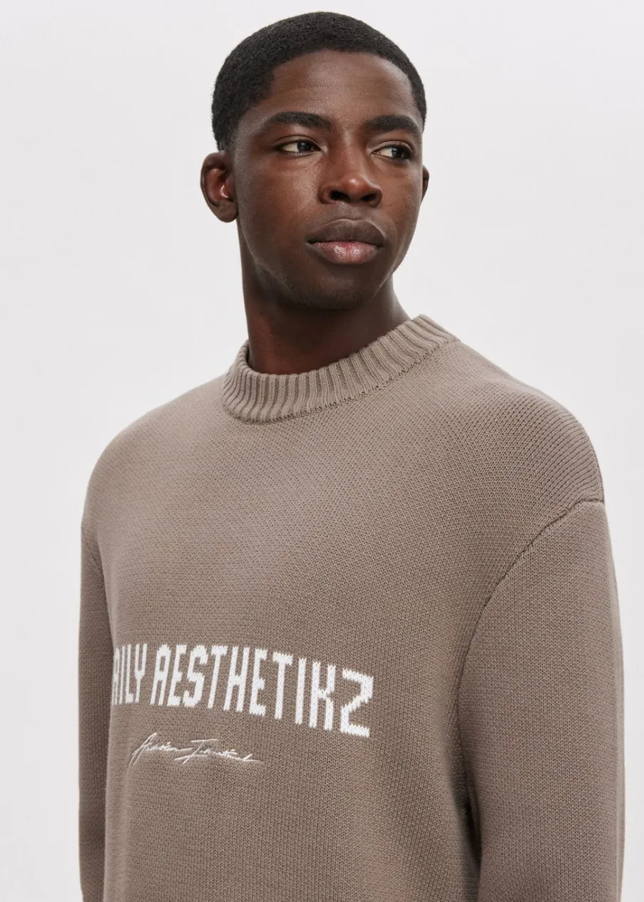 Deze trui van Daily Aesthetikz heeft lange mouwen, een ronde hals en een relaxed pasvorm. De trui valt op door het logo van het merk dat op de voorkant zit. De geribde boorden zorgen voor een comfortabele fit. Draag deze trui met een van onze jeans voor een casual outfit.