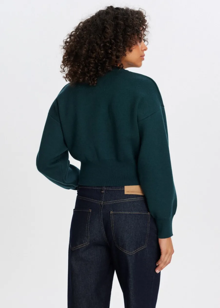 Dit vest heeft lange mouwen, een ronde hals en een knoopsluiting aan de voorkant. Het model heeft een iets kortere pasvorm en subtiele pofmouwen. Mooi te combineren met een jeans voor een casual look.