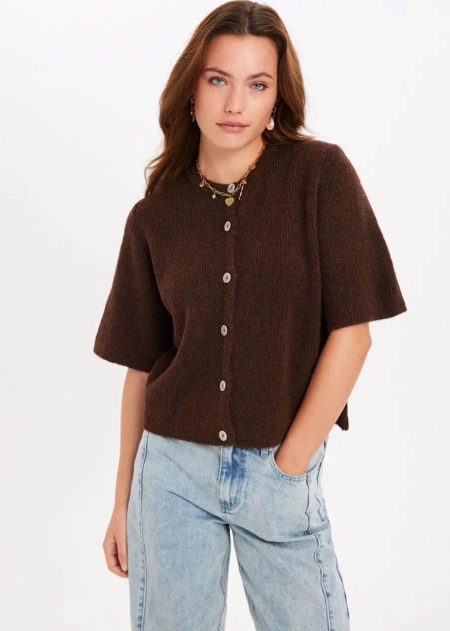 Dit vestje is perfect voor elke dag en helemaal on-trend. Het vestje heeft korte mouwen, een ronde hals, knoopsluiting en gemaakt van een gebreide kwaliteit. Het vestje in combinatie met een jeans is echt de perfecte casual look.