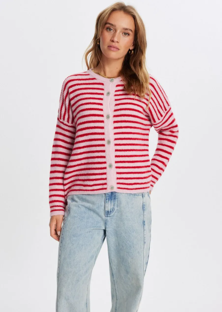 Dit vestje heeft een normale pasvorm, lange mouwen en een ronde hals. Het is voorzien van een streepjespatroon en heeft een heerlijk zachte structuur. Get cozy en style dit schattige vestje met een fijne jeans.