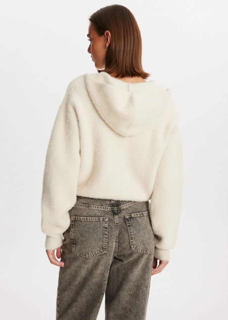 Dit vestje van Melting Stockholm heeft een capuchon, lange mouwen en een ritssluiting aan de voorkant. Het is gemaakt van een zachte, gebreide stof die comfortabel en warm aanvoelt. Aan de voorkant zitten twee klepzakken en aan de onderkant een koord dat je kunt aantrekken. Combineer deze cardigan met een skort of een jeans voor een casual look.